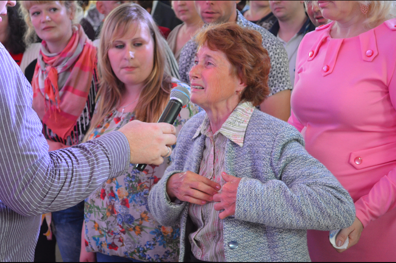 91-летняя Инна Онищенко поделилась с нашим корреспондентом радостью – по молитве она снова начала слышать без слухового аппарата. Со слезами радости она спрашивала, когда будет проходить следующее служение. А Вера Заметина во время молитвы почувствовала, как у нее начала уменьшаться опухоль в груди. В марте 2014 года ей врачи поставили страшный диагноз. «Когда я ехала сюда я знала, что со мною произойдет чудо. Я принимаю свое исцеление!», – сквозь слезы радости говорила она.